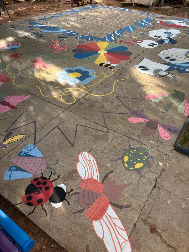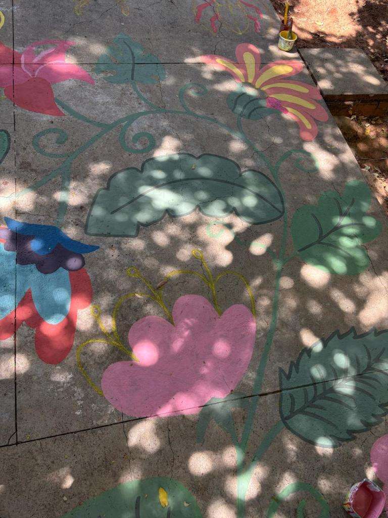 Outro ponto importante de reiterar é que a pichação continua sendo a principal dificuldade enfrentada por eles. Gabriele conta que na última ação de 2024, na EMEF Cônego Aníbal de França, a quadra, que é aberta ao público aos finais de semana, foi coberta por desenhos, e que quando voltaram na escola, para coletar os feedbacks, tudo estava pichado, de novo. Ela afirma que continuam tentando por ser esse o propósito do projeto, apesar de o trabalho “cair por terra”.